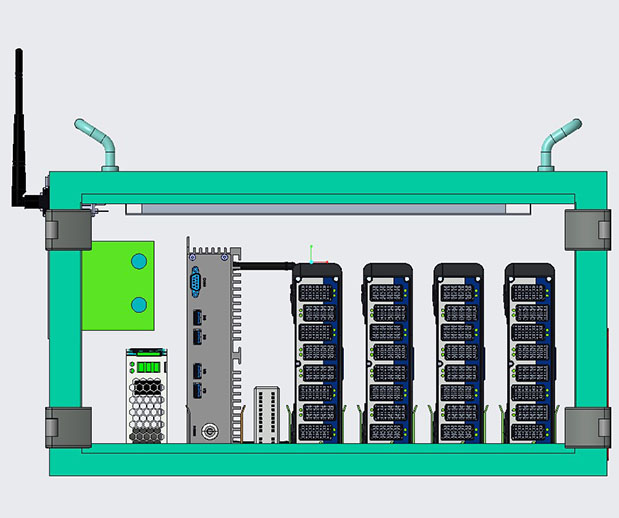 系统内具备工业采集计算机(含采集软件),4G模块,交换机,开关电源,集线盒
